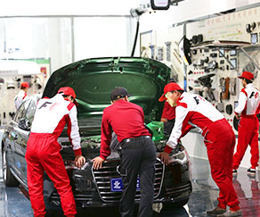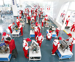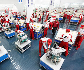 学校斥资3.88亿打造汽车实训基地,实车解剖真车实践,2-4人一个实训工位,确保实训质量。
